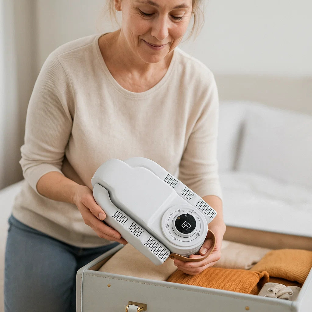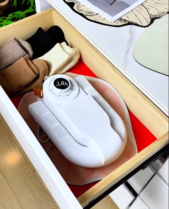 Foldable, compact, and whisper-quiet, it fits any home or travel setup. Keep your shoes dry, odor-free, and ready for every step — every day.